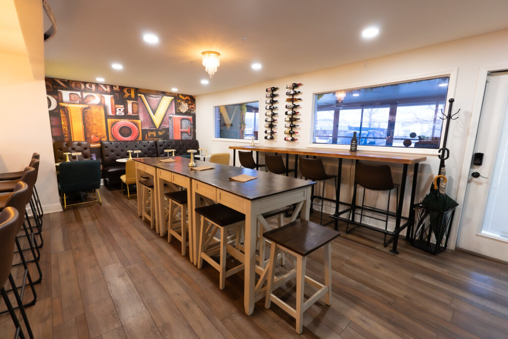 Step into The Wynwood, the heart of our wine bar and the centerpiece of every gathering. This elegant main room blends modern sophistication with timeless charm, offering a warm and inviting atmosphere that sets the tone for memorable moments.